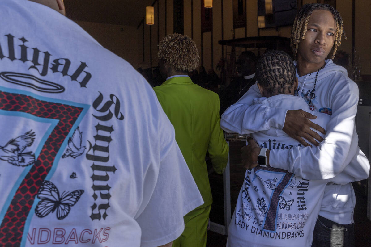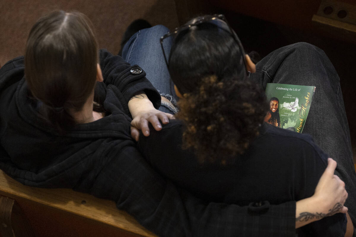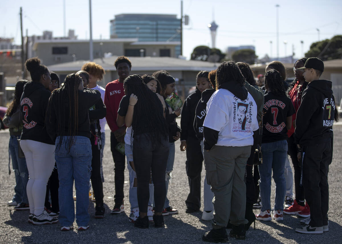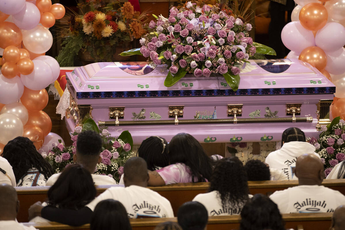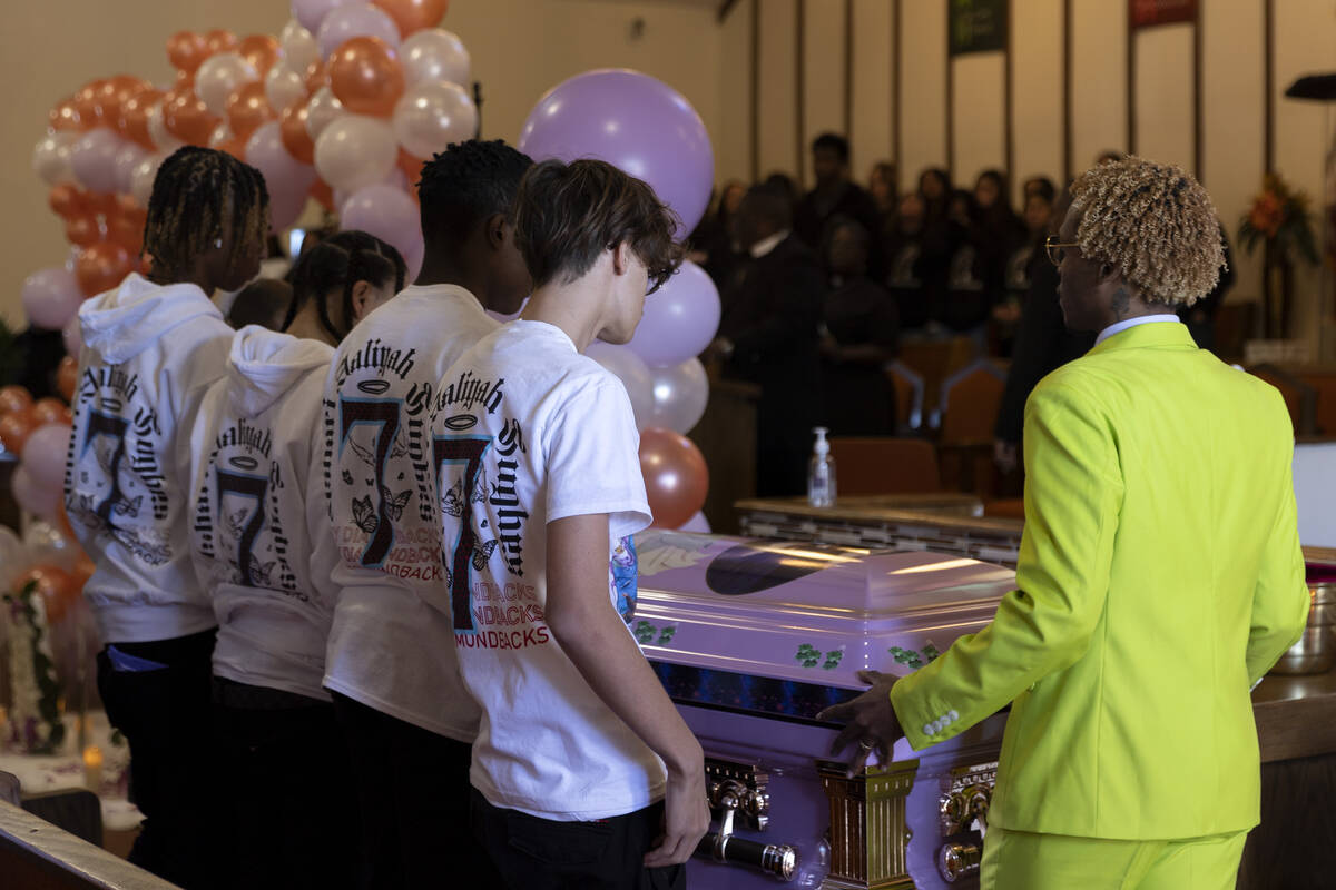 Before a crowd of more than 200 mourners Saturday, pall bearers placed the casket containing the body of 16-year-old Ashari Aaliyah Hughes beneath an arch of pink and orange balloons fronting the altar of the New Bethel Baptist Church in western Las Vegas.