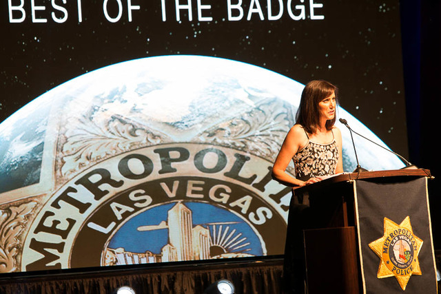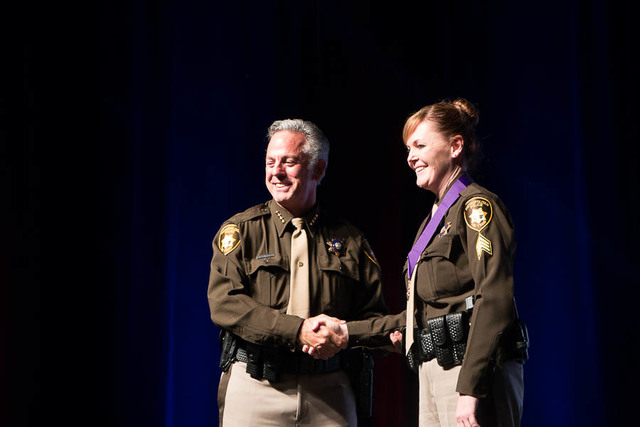 About 600 people erupted into applause Friday when she was introduced and went on stage to receive a Purple Heart from Clark County Sheriff Joe Lombardo during the third annual Best of the Badge award ceremony.