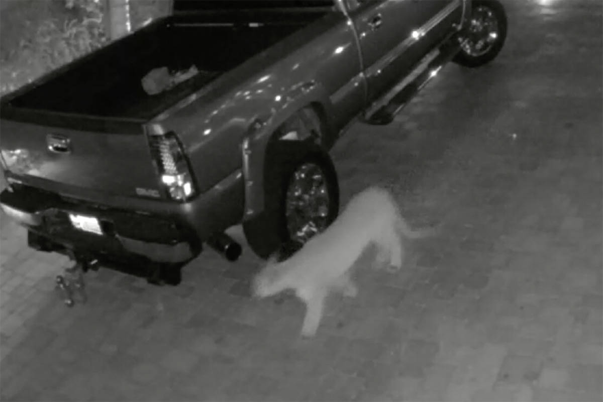 The cat was recorded on video surveillance Tuesday night in a neighborhood farther north, adjacent to Red Rock Country Club.