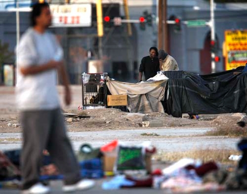 "It's tough when you have an influx moving in" from Las Vegas, Stamis said. "They are setting up tents, makeshift houses, and camping. It's terrible for us, because we try to keep our property looking nice. That's hard to do when you have homeless people wandering in and washing in the bathroom. It hurts business."