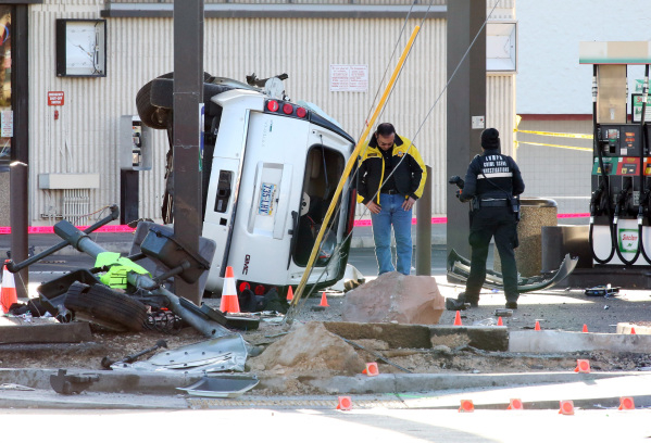About 20 minutes after the incident began, the man failed to stop at a red light and struck a sedan in the intersection of Spring Mountain Road and Rainbow at 3:05 a.m., killing the woman, Meltzer said.