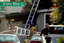 Sergio Salazar tried to break through the wall of a burning shed with a pickax to save the boy inside. After a few blows, the handle broke. By the time firefighters arrived at the blaze near Oakey Boulevard and Eastern Avenue on Thursday afternoon, all was lost.