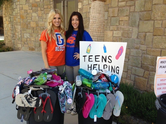 Savannah Prenger and Ellie Forche, 17-year-old juniors at Bishop Gorman High School, held a drive at their school to collect sunscreen, refillable water bottles and flip-flops to benefit the organization Teens Helping Teens, which was founded in 2012 by Prenger and her sister, Siena Prenger, 13.
