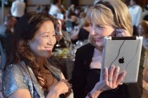 Nancy Wong, left, smiles as she watches her husband, U.S. Air Force Col. Steve Seroka, via a Skype call on an iPad, during a Leadership Las Vegas graduation ceremony in the Premier Ballroom at the MGM Grand on Friday.