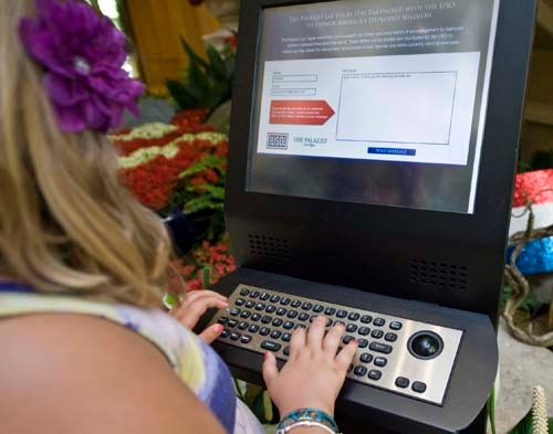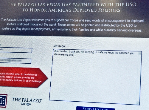 A few weeks ago, the Palazzo installed an electronic kiosk in the resort's atrium, enabling the public to write letters of support to American troops. And they didn't stop there. Management installed a letter-writing program on 2,500 internal computers, giving employees the means to write their own notes.