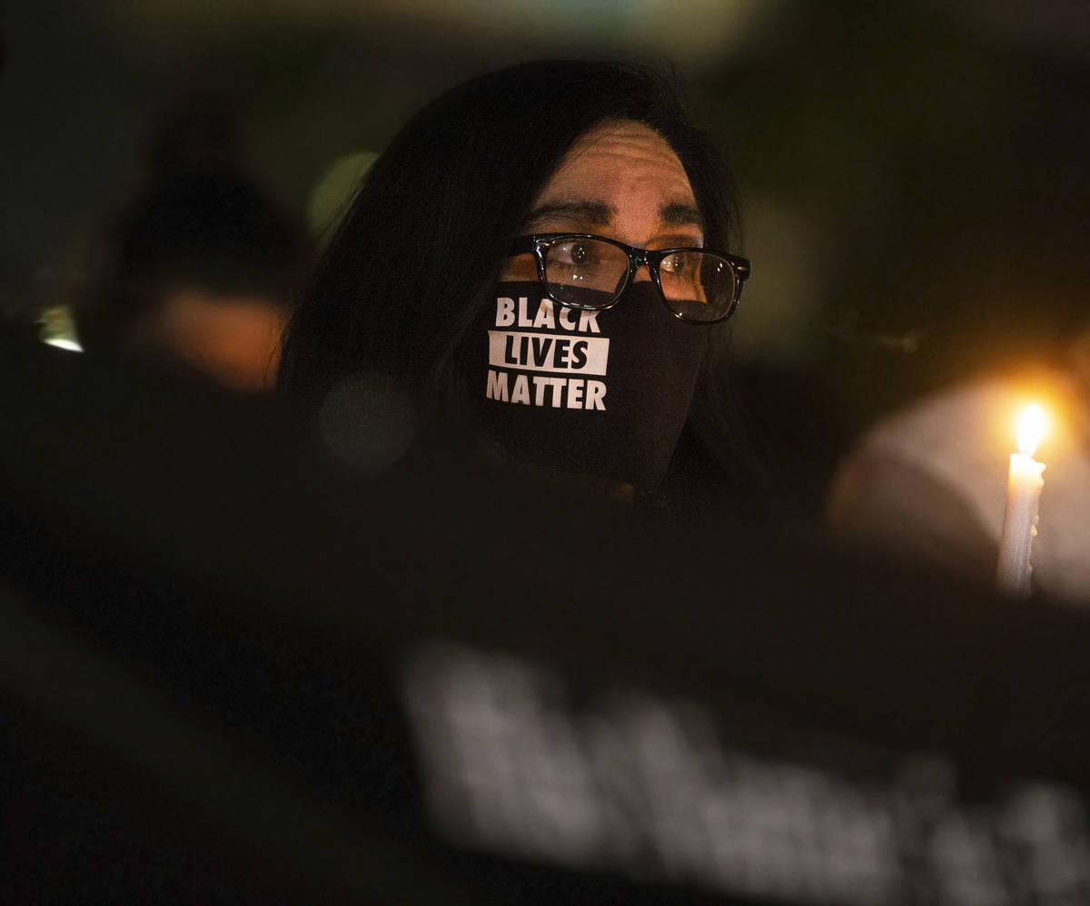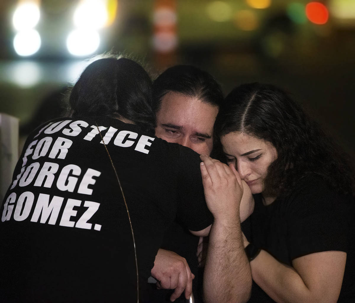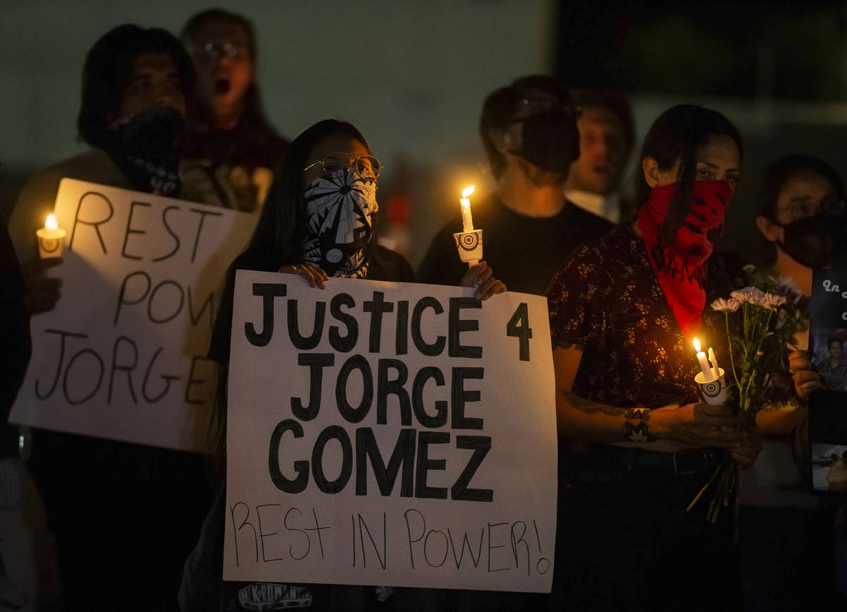 More than 50 people marched more than 3 miles as part a vigil Tuesday night to honor Jorge Gomez, who was shot and killed by Las Vegas police last week at a Black Lives Matter protest.