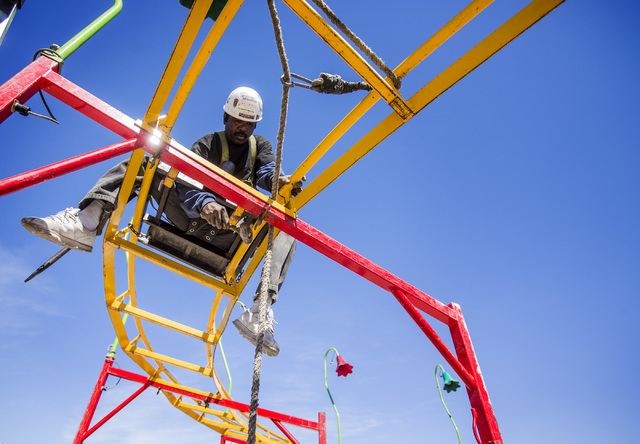 Jesee Daniels sets up a merry-go-round ride at the carnival site on Grand Central Parkway, adjacent to The Smith Center for the Performing Arts, on Tuesday, May, 13, 2014. The carnival is part of the 80-year-old Las Vegas Helldorado Days. (Jeff Scheid/Las Vegas Review-Journal)