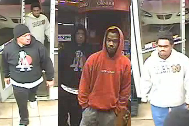The men entered the businesses on Dec. 10 and forcefully took large crates of merchandise before fleeing, police said.