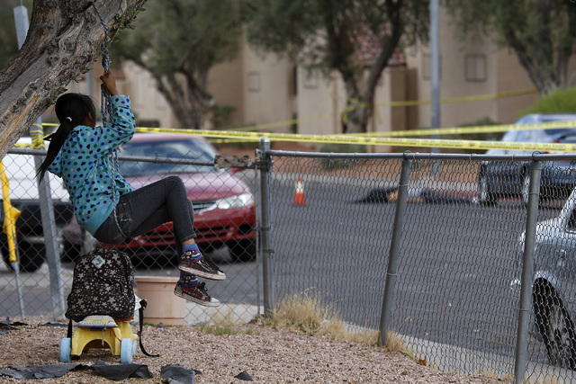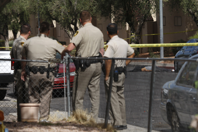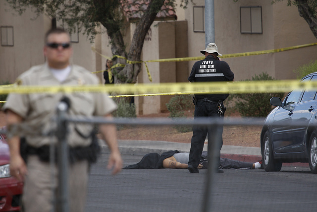 Officers received reports of shots fired in an apartment complex courtyard near Maryland Parkway and Desert Inn Road just after 3 p.m.