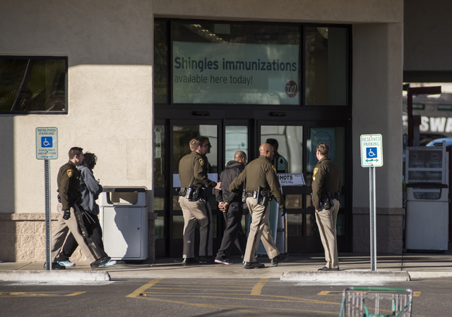 An officer spotted a car linked to the robberies just before 5 a.m. and a short pursuit ensued. The chase ended when the car crashed in a lot near a Walgreens at the corner of Desert Inn and Fort Apache roads.