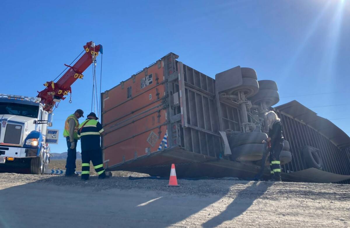 A rolled over semitruck has closed U.S. Highway 95 in both directions northwest of Las Vegas.