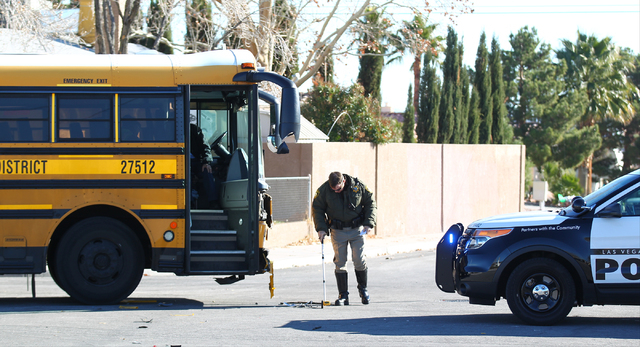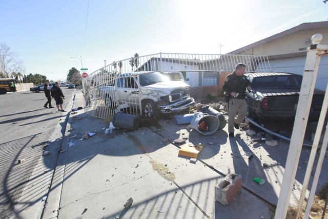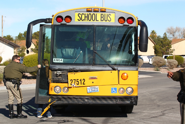 The bus crashed into the pickup in the intersection of Carl Avenue and Saylor Way, near Jones and Lake Mead boulevards, at 8:42 a.m.