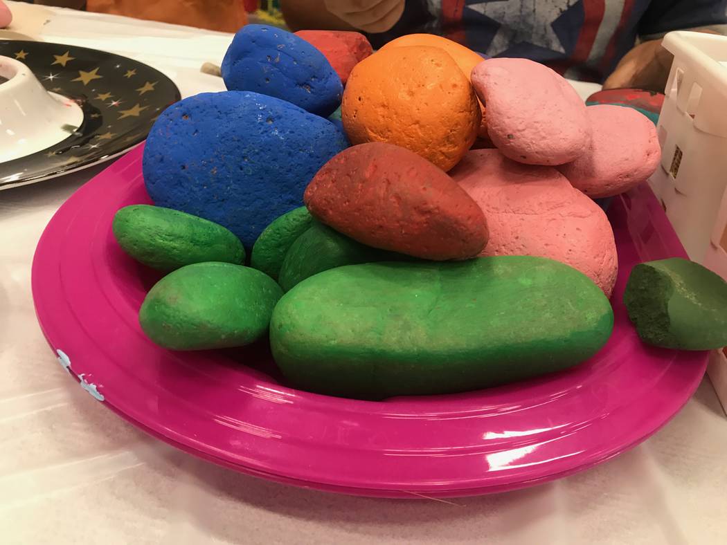 Attendees painted about 100 stones with messages such as “Forever in our hearts,” “Hope and faith” and “You are loved.” Many children painted their stones with hearts, rainbows, flowers and American flags.