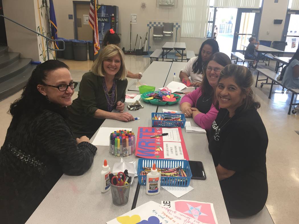 She invited students, teachers, parents and community members to the school Tuesday to write cards to first responders and shooting survivors and paint stones and decorate leis, which will be placed at the Las Vegas Community Healing Garden.
