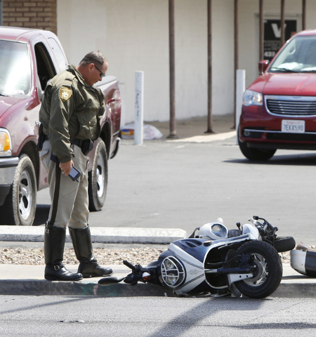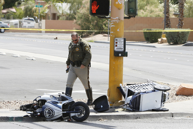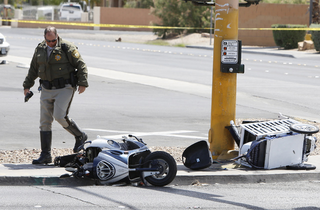 Officers were called at 10:48 a.m. to Nellis Boulevard and Harris Avenue after 41-year-old Zonkiss Jones, the operator of a TaoTao scooter, drove off the roadway and crashed, police wrote in a release Friday afternoon.