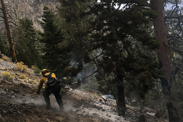 U.S. Forest Service firefighters have contained a small wildfire that started Thursday morning near Mary Jane Falls in Mount Charleston.