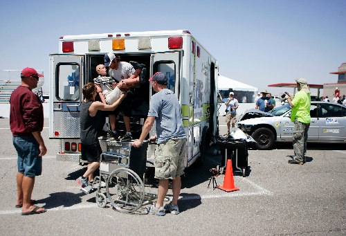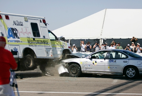 Representatives of insurance companies and auto makers also were on hand as seven crashes under varying circumstances were staged.