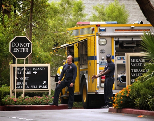 Tuesday's fire recalled a blaze in January 2008 that burned the facade of the Monte Carlo resort, not far from the Treasure Island. Seventeen people were treated for minor injuries and smoke inhalation during that fire, which forced the evacuation of about 6,000 guests and employees. The fire was blamed on a rooftop welding accident.