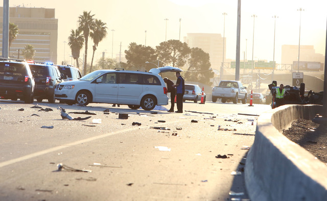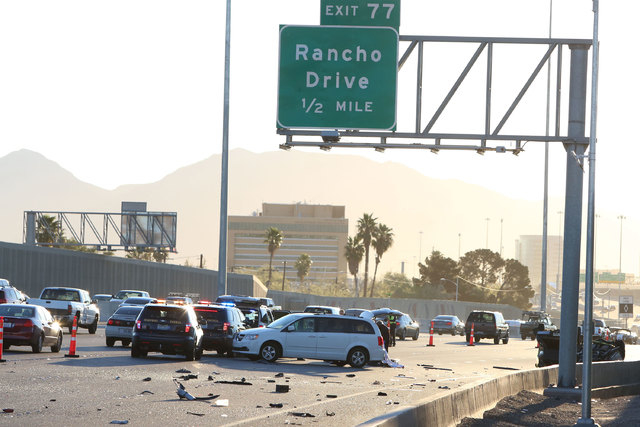 Four travel lanes were blocked off for about two and a half hours, slowing the morning commute from the north and west sides of the Las Vegas Valley.