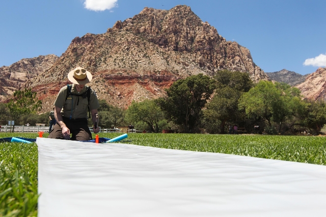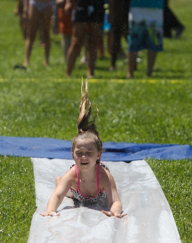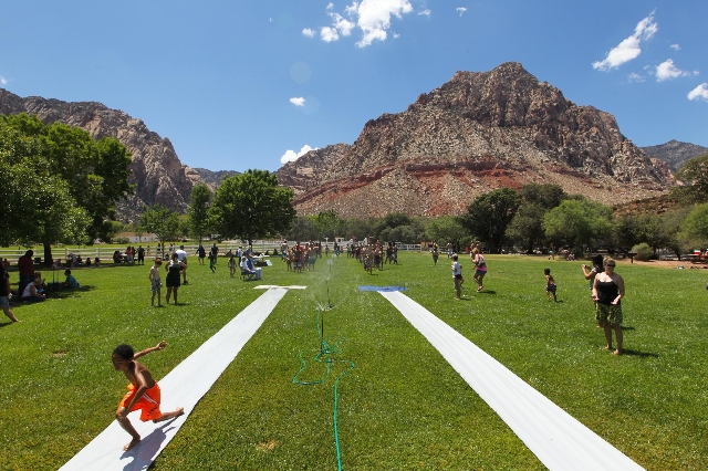On Sunday, staff rolled out a 50-foot water slide on the picnic meadow and turned on the sprinklers. Rangers also offered an interactive program about water conservation in Las Vegas. The event will be held four more times this month on Aug. 8, 16, 22 and 30.