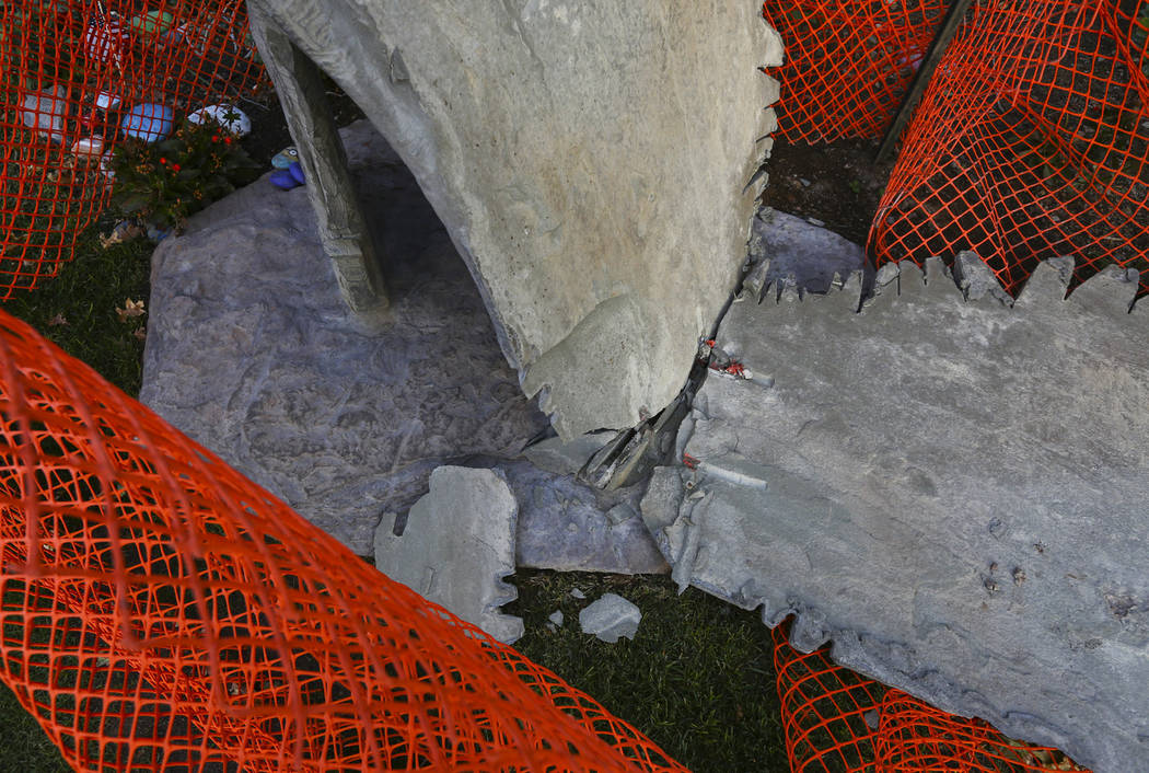But sometime between Wednesday night and Thursday morning, the statue was cracked, according to emails Jacobs provided to the Review-Journal sent between himself and Tom Perrigo, executive director of community development and chief sustainability officer for the city of Las Vegas.