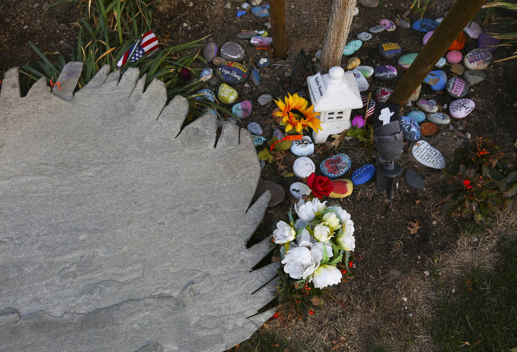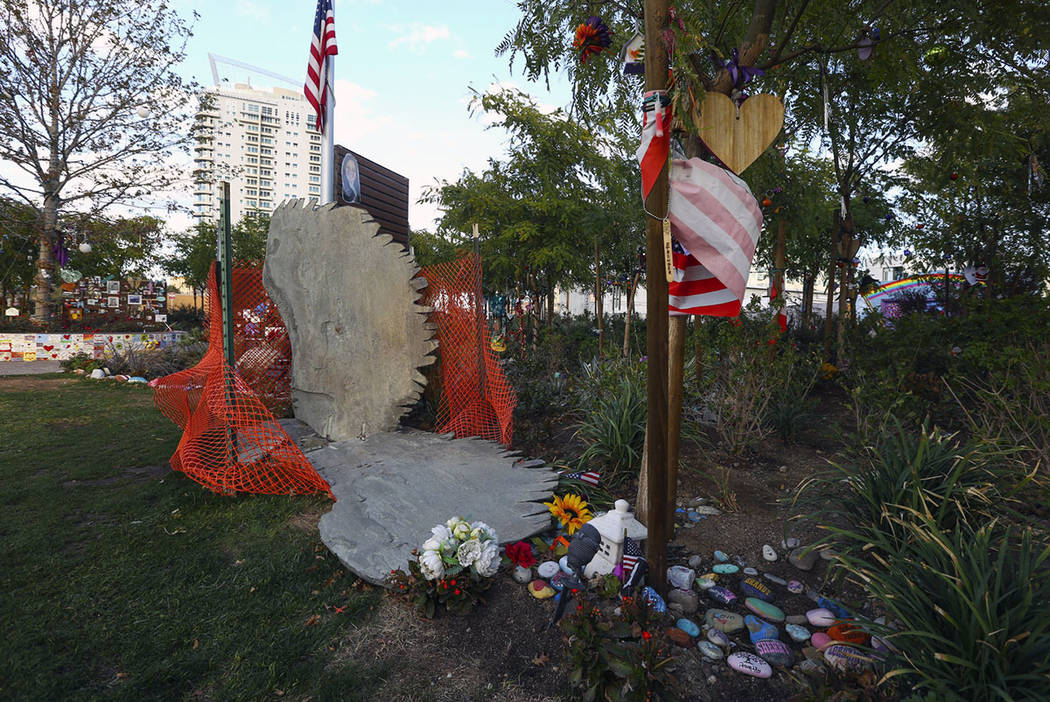 Jacobs and his wife, Elizabeth Bryan-Jacobs, created and donated the nearly 3,000-pound, 6-foot-tall statue as a tribute to the 58 people who died in Oct. 1, 2017, shooting. Installation of the statue at the Las Vegas Community Healing Garden began in September, and it was dedicated on Oct. 1.