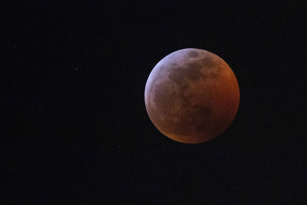 The "super blood wolf moon" on Sunday, Jan. 20, 2019, in Las Vegas. (Benjamin Hager/Las Vegas Review-Journal) @BenjaminHphoto