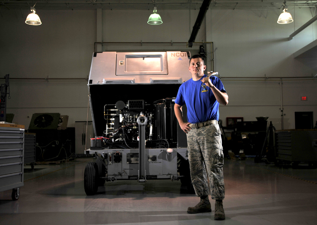 The 432nd Wing public affairs team at the Indian Springs drone base, 45 miles northwest of Las Vegas, reported Wednesday that instead of buying a new $90,000 nitrogen cart to inflate tires and equipment for remotely piloted aircraft, Hollinger invested $11,000 and spent a couple of days fixing an old one to keep things flying under tight budget constraints.