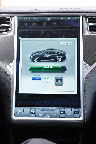 The sleek black sedan zips effortlessly from zero to 60 in 4.4 seconds and offers more cargo room than his Mercedes sport utility vehicle. He can surf the Internet or home in on a new destination using Google Maps from the dash-mounted 17-inch touch screen. To enter the vehicle, flush door handles power out like something from the latest James Bond movie.