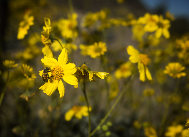 Wildflowers were in bloom Friday — the first day of spring — at Lake Mead National Recreation Area.