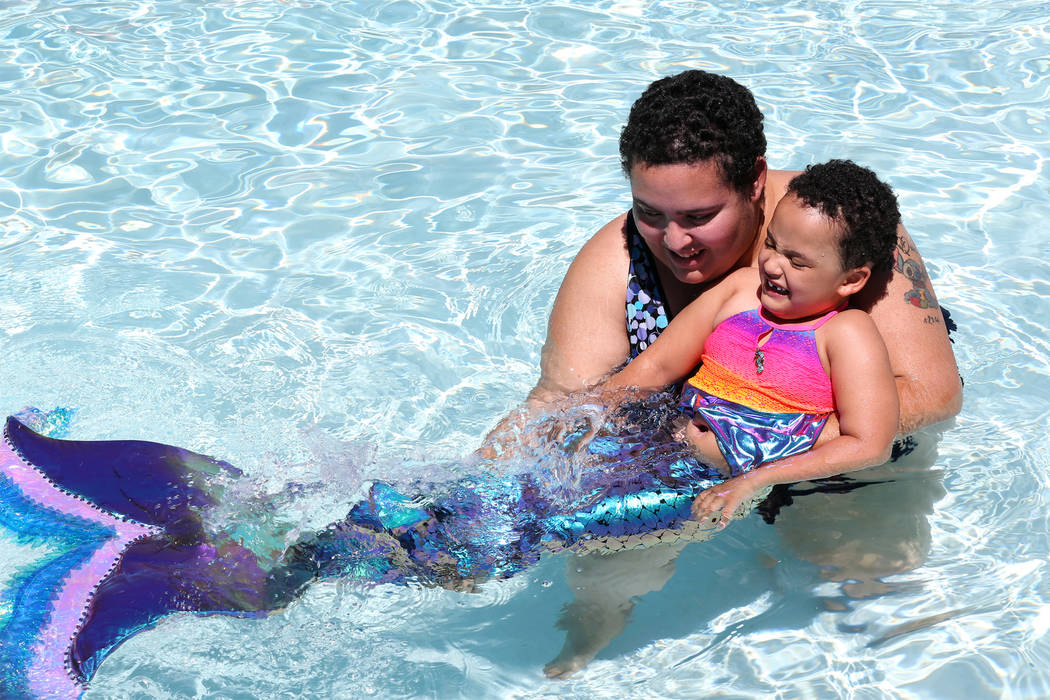 Ashley Downing with her four-year-old daughter Quinn at the Mandalay Bay Beach in Las Vegas, Tuesday, May 29, 2018. Downing, who was born with severe epilepsy, suffering multiple seizures daily, got her wish granted to be a mermaid for a day with the help of Make-A-Wish Southern Nevada. Erik Verduzco Las Vegas Review-Journal @Erik_Verduzco