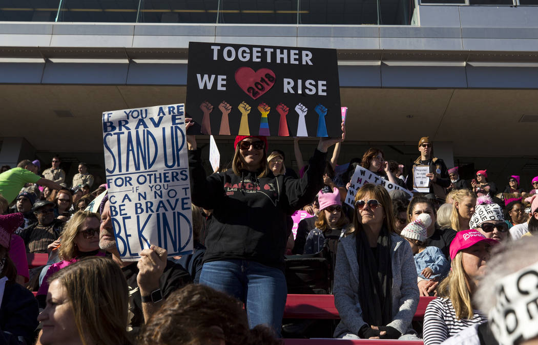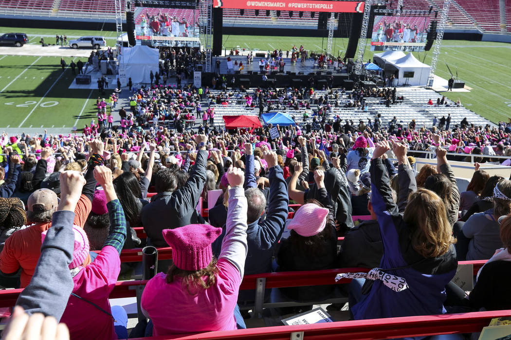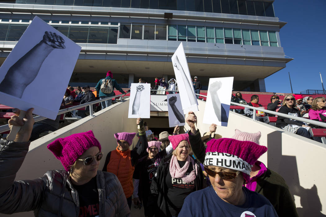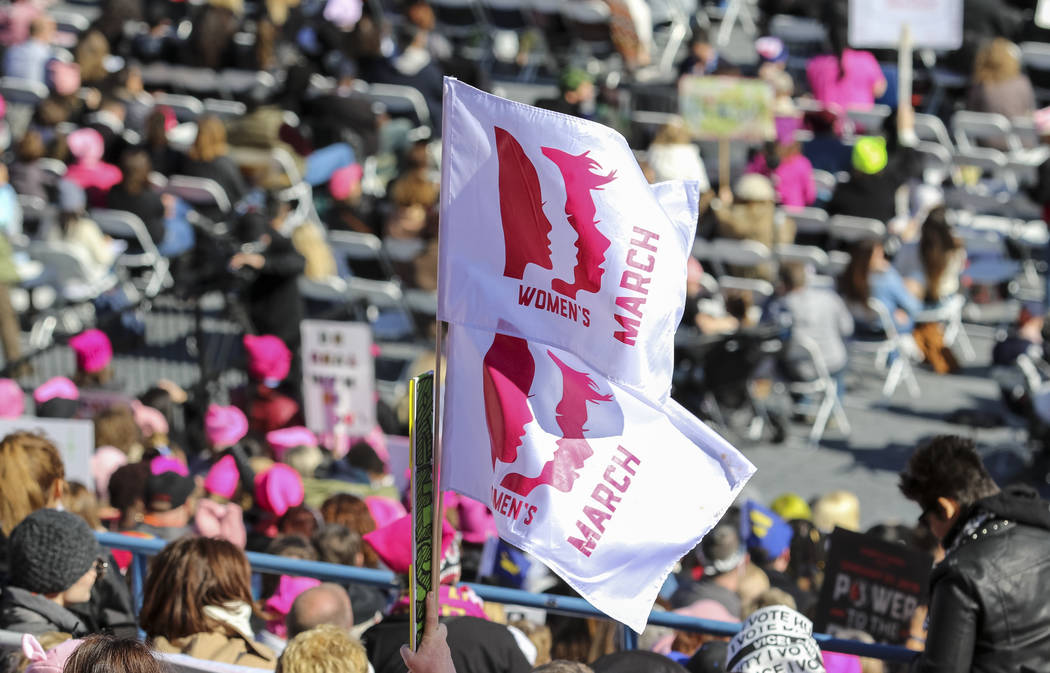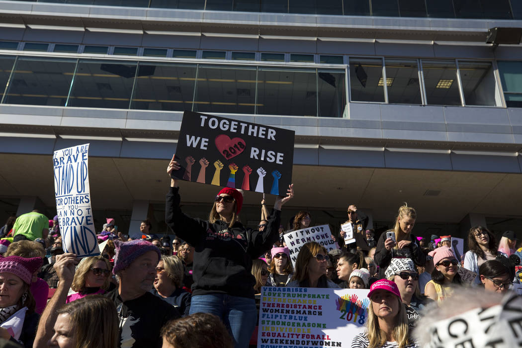Thousands of women, and some men, flocked to Las Vegas to mark a full year since the Women’s March on Washington, which drew more than 2 million participants worldwide, and to participate in a rally that lasted more than six hours.