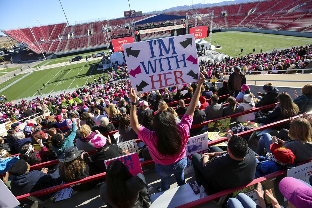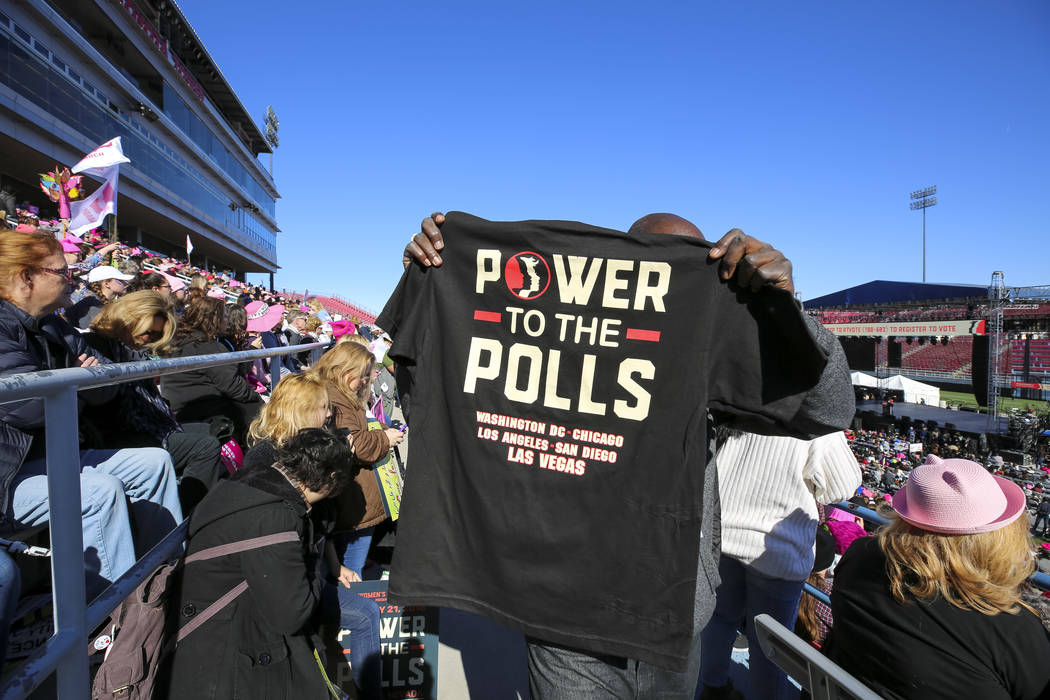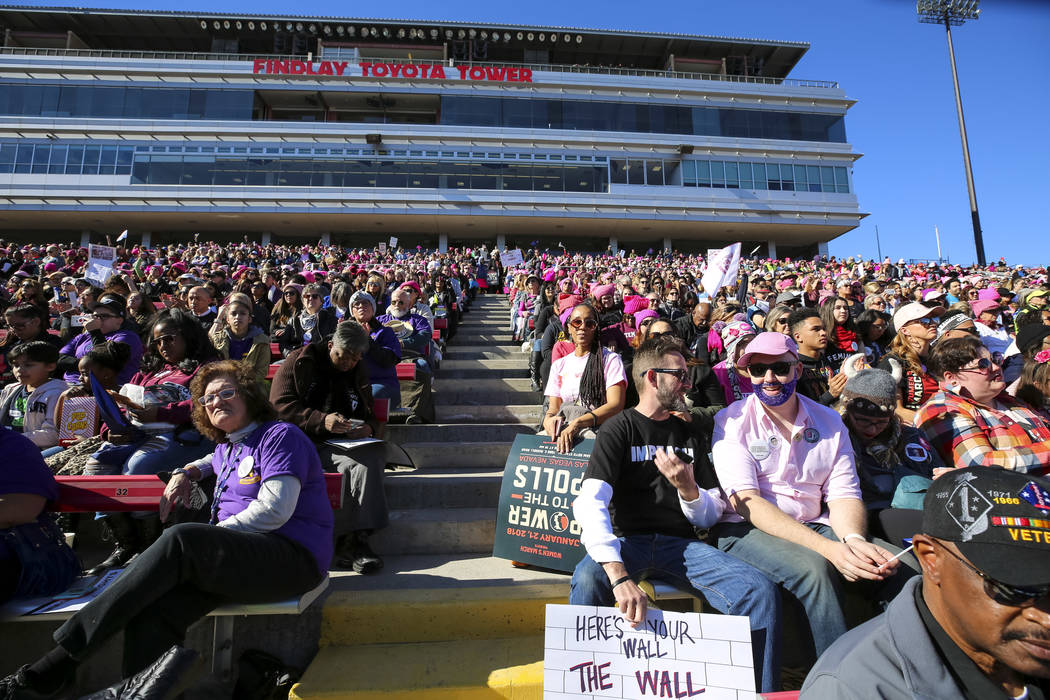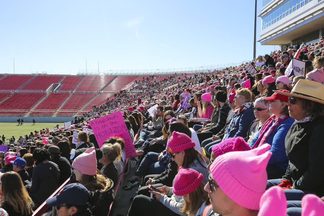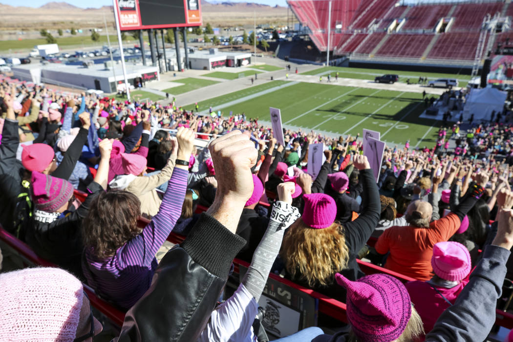 Thousands of women, and some men, flocked to Las Vegas to mark a full year since the Women’s March on Washington, which drew more than 2 million participants worldwide, and to participate in a rally that lasted more than six hours.