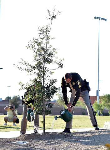 Two Japanese blueberry trees were planted in the rear of the station, and after the Pledge of Allegiance and a prayer, officers from Soldo and Beck’s squad took turns watering the plants. Lombardo said the trees were positioned so officers at the station will see the plants every day as they leave the parking lot and return safely. That way the officers will know Soldo and Beck are looking out for them for generations to come, Lombardo said.