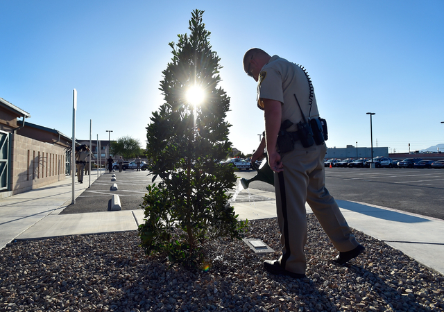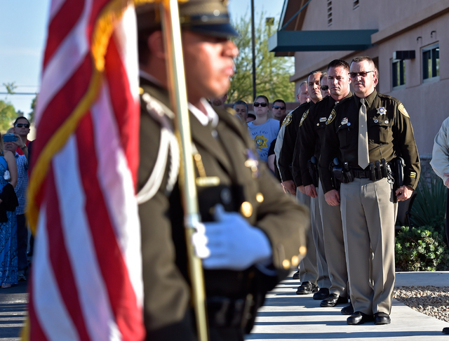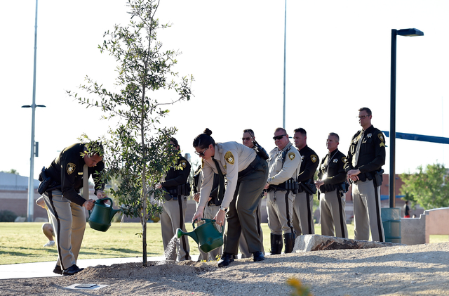 Las Vegas police officers Igor Soldo and Alyn Beck, who were ambushed and killed as they ate lunch June 8, 2014, were honored at the substation, located near North Pecos Road and Las Vegas Boulevard. The shooters also gunned down civilian Joseph Wilcox at a nearby Wal-Mart before they were killed in a shootout with police.