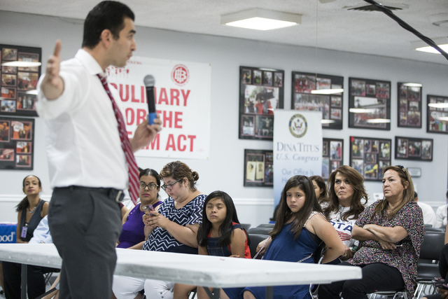 So far, the issue has attracted widespread attention. Latino and immigration advocacy groups demonstrated Thursday in Las Vegas and talked about fallout from the 4-4 court decision. State Sen. Ruben Kihuen, a Democratic candidate for the 4th Congressional District, tried to motivate about 35 people during a community forum at a Culinary union event for people affected by the immigration plan.