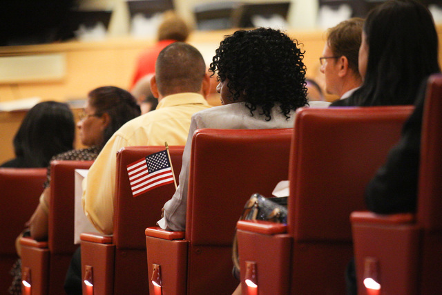 At a naturalization ceremony Thursday, Jeanne Kent, Las Vegas field office director for U.S. Citizenship and Immigration Services, recognized 175 new naturalized U.S. citizens.