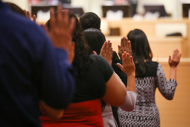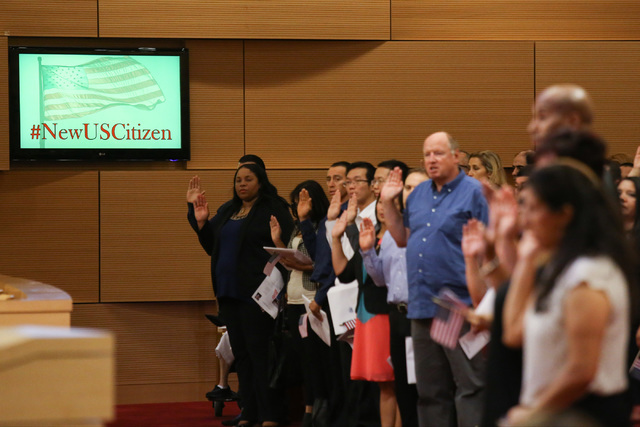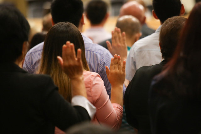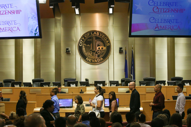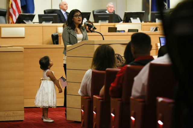 At a naturalization ceremony Thursday, Jeanne Kent, Las Vegas field office director for U.S. Citizenship and Immigration Services, recognized 175 new naturalized U.S. citizens.