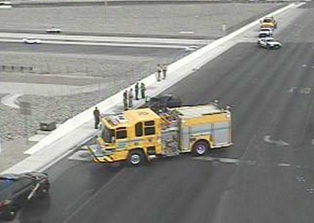 Nevada Highway Patrol is reporting a vehicle fire Monday morning on southbound 215 Beltway at South Jones Boulevard.