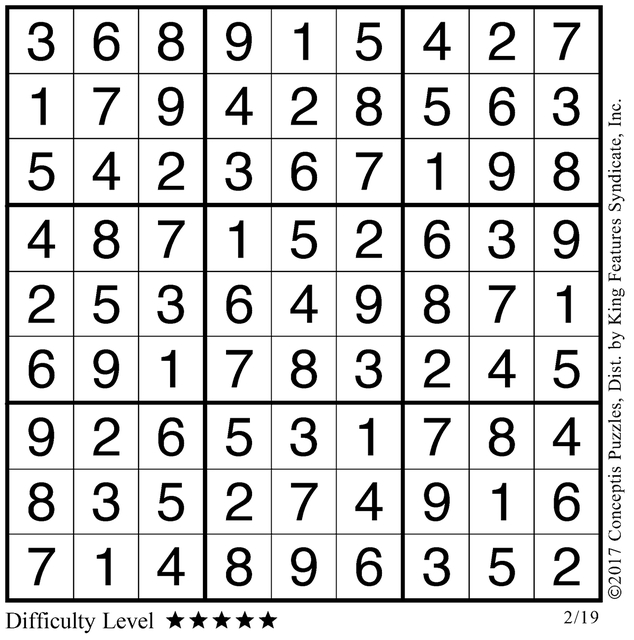 Solutions to View’s puzzles, Feb. 23, 2017.