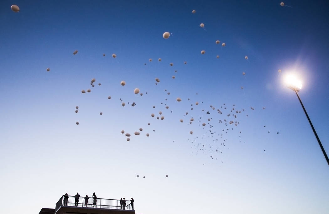 Before the ceremony began, students shuffled onto the football field to take a group photo commemorating the vigil. The group stood in the shape of a heart before they released balloons into the air.