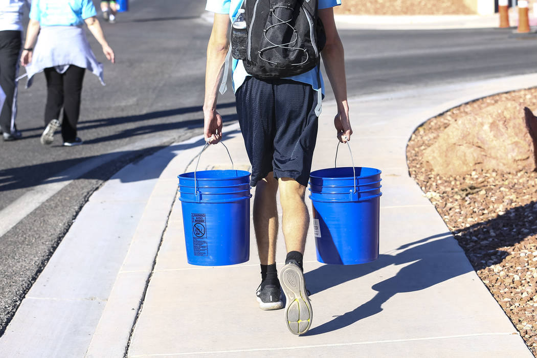 Robert Jacobsen, 17, carries buckets of water during One Drop's 2.7-mile Walk for Water fun walk from Symphony Park at The Smith Center to the Springs Preserve in Las Vegas, Saturday, Oct. 21, 2017. Richard Brian Las Vegas Review-Journal @vegasphotograph