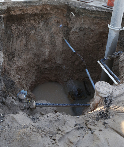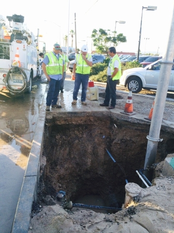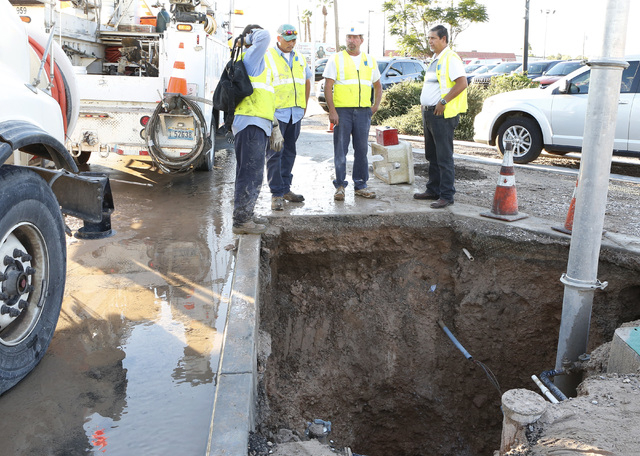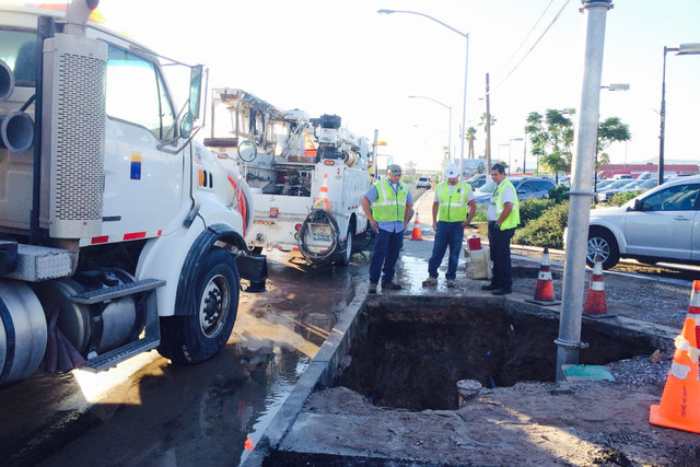 Two southbound lanes on Boulder Highway were closed and three to four businesses were without water service, LVWD supervisor Mark Luberps said.