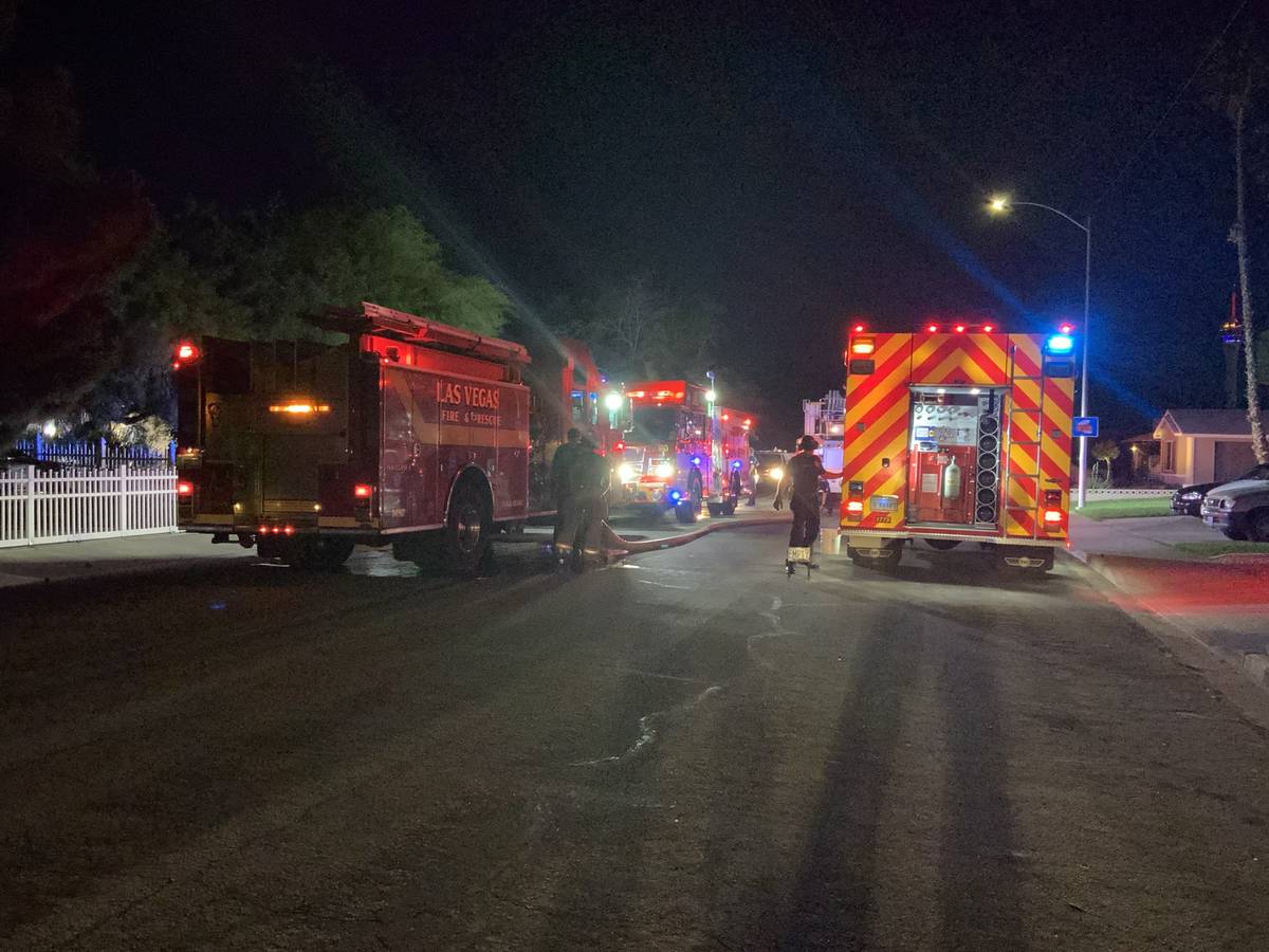The Las Vegas Fire Department said the fire began outside the home, located in the 2900 block of Gilmary Avenue, and burned through a wall into the closet of a bedroom, where the woman was napping with her dog, according to a news release.
