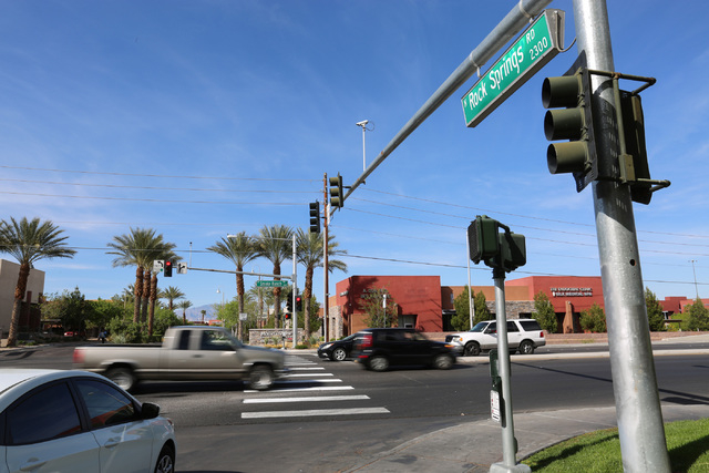 Las Vegas police responded to the intersection at 2:23 p.m., and the woman was taken to the University Medical Center with serious injuries.