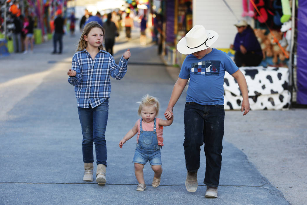 From left, Sidney, Riley and Hudson walk around the Clark County Fair & Rodeo in Logandale, Thursday, April 12, 2018. Andrea Cornejo Las Vegas Review-Journal @dreacornejo