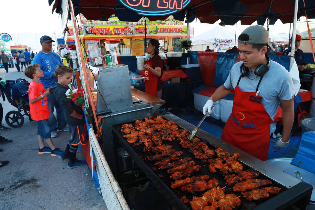 Ty, who did not wish to be identified by his last name, 18, cooks teriyaki chicken during the Clark County Fair & Rodeo in Logandale, Thursday, April 12, 2018. Andrea Cornejo Las Vegas Review-Journal @dreacornejo