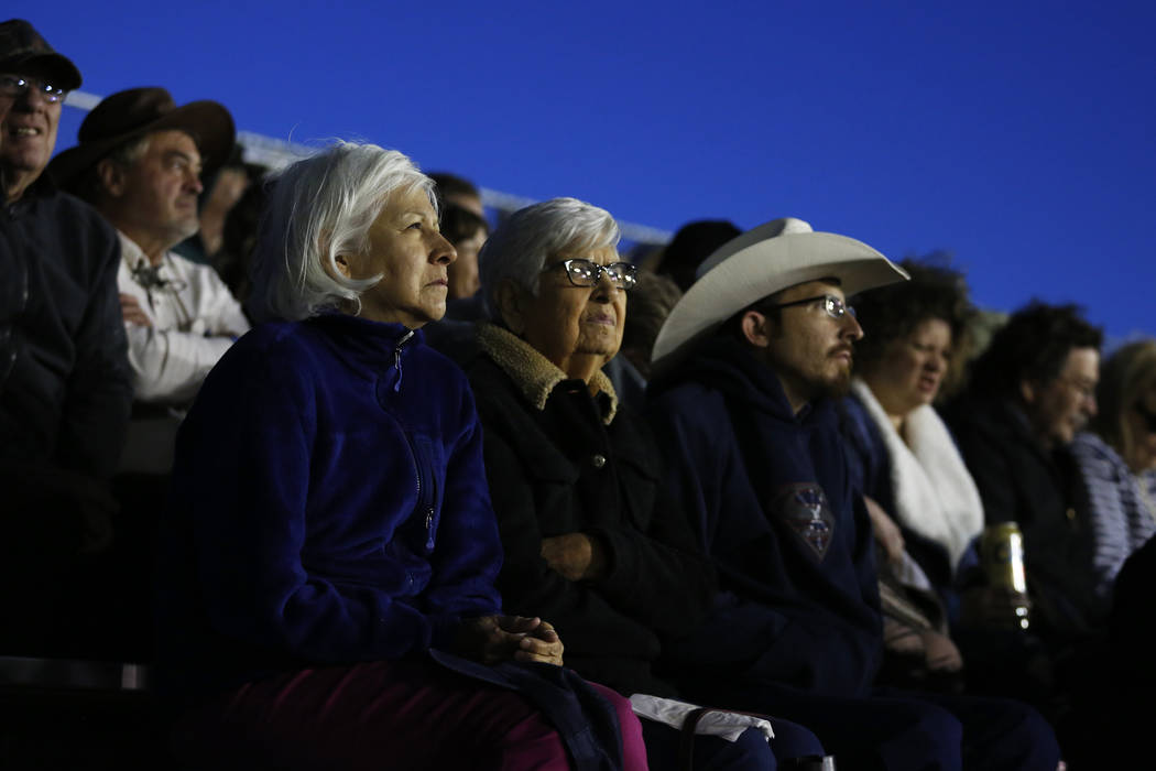Attendees watch a bronc riding competition at the Clark County Fair & Rodeo in Logandale, Thursday, April 12, 2018. Andrea Cornejo Las Vegas Review-Journal @dreacornejo