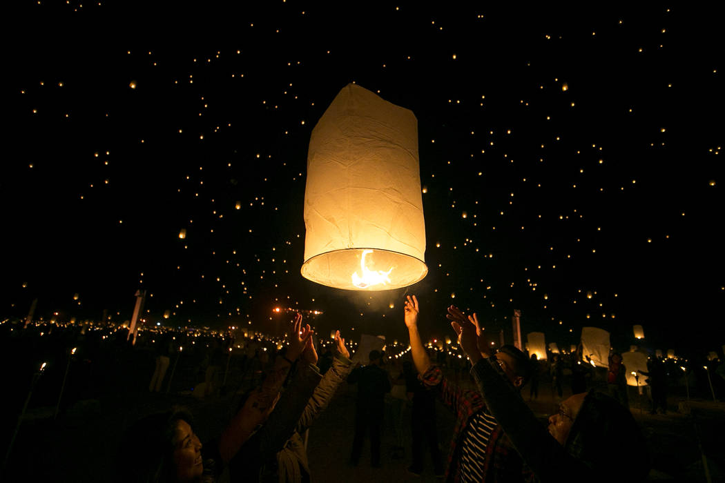 The lantern joined thousands of others as it floated into the sky. The warm candles lit up the sky as the near-full moon shined on the vast desert at Moapa Paiute Travel Plaza north of Las Vegas near Valley of Fire State Park.