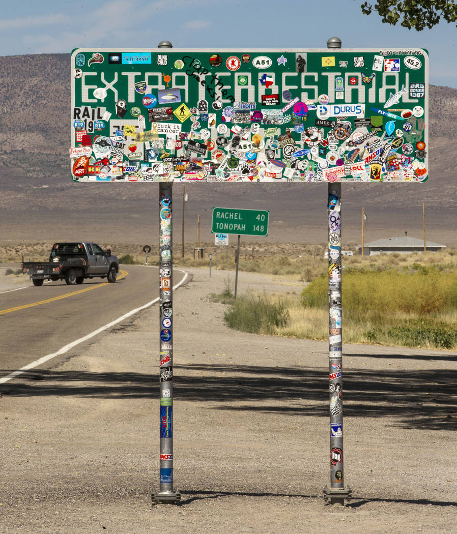 Since the sign already is a popular photo destination for travelers, transportation officials feared the expected mass of people traveling from Las Vegas to the Alien Research Center in Hiko and the Little A’ Le’ Inn in Rachel, might compound expected traffic issues by stopping to take photos of the sign.
